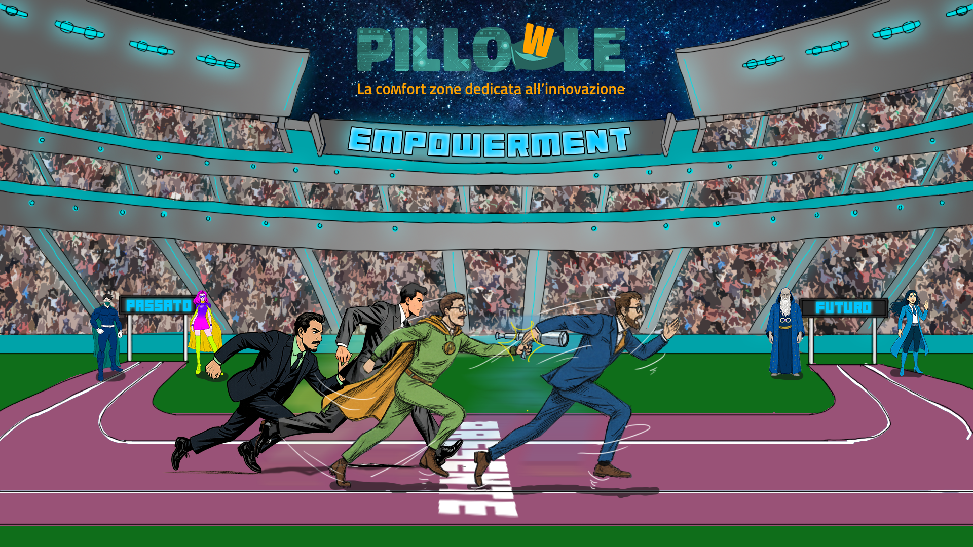 Nella Pillo(w)la 26 analizziamo il terzo e ultimo pilastro del Modello Strategico Operativo: l‘Empowerment e il Change Management. Per la copertina, ci siamo ispirati alla metafora della disciplina della staffetta, che rappresenta il lavoro di squadra, la collaborazione e la successione di compiti per raggiungere un unico obiettivo. La partenza è il passato (Pillowla 24), e l’arrivo è la Pubblica Amministrazione del futuro (Pillowla 25). Per raggiungere tale obiettivo, bisogna cominciare a lavorare già da oggi, costruendo una nuova cultura organizzativa. Il pioniere di questo cambiamento è PA Empatica: qui, infatti, è intento a prendere il testimone-binocolo dell’Empowerment passato dal Professor Radar, seguito dall’amministrazione “tradizionale”. Il binocolo rappresenta lo sguardo al futuro necessario per guidare la trasformazione.